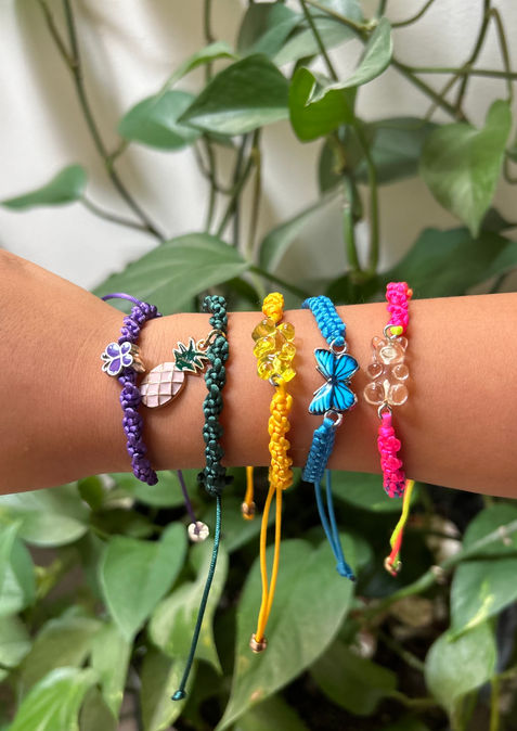 Crochet Plushies, Headphones cases, Book covers/bookmarks, Keychains, Mug covers/coasters, Flower Vases, Macrame bracelets, and Beaded bracelets